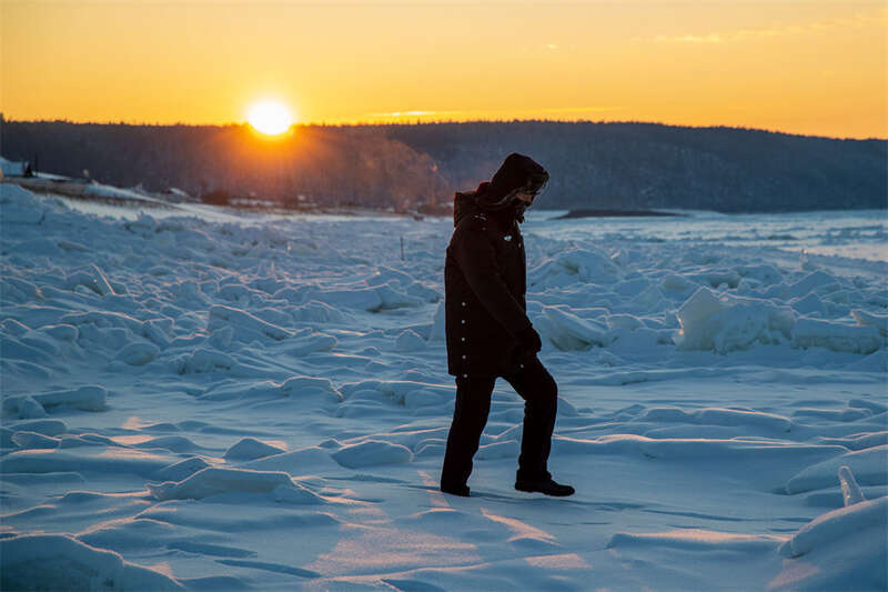 1月8日,史先强在洛古河村旁封冻的黑龙江江面上进行边境巡逻。新华社记者 张涛 摄