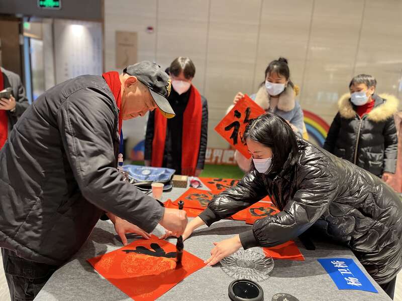 “东方日出金乌艳,除夕月升玉兔皎”“生意兴隆如旭日,财源茂盛似春潮”在活动现场,书法家们挥毫泼墨,一副副饱含祝福与喜庆的春联、“福”字跃然纸上,大家连连拍手叫好。