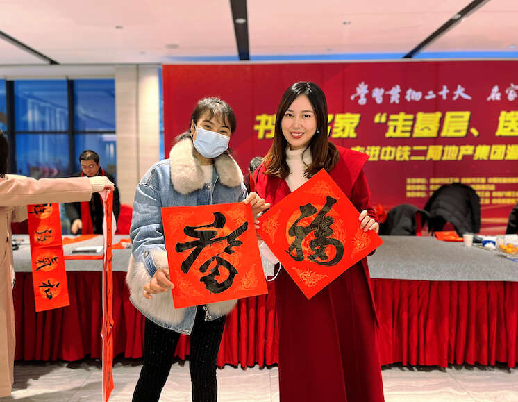 中国青年报客户端讯(张雨濛 胡意旋 中青报·中青网记者 王鑫昕)1月10日,中国中铁职工书法协会西南分会携手成都市书法协会开展了“走基层、送万福”公益活动,为中铁二局地产集团温江中铁城项目职工送去春联、福字等“文化年货”,让一线职工提前感受新年的喜悦。