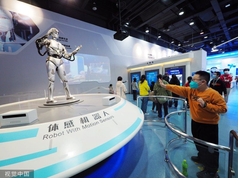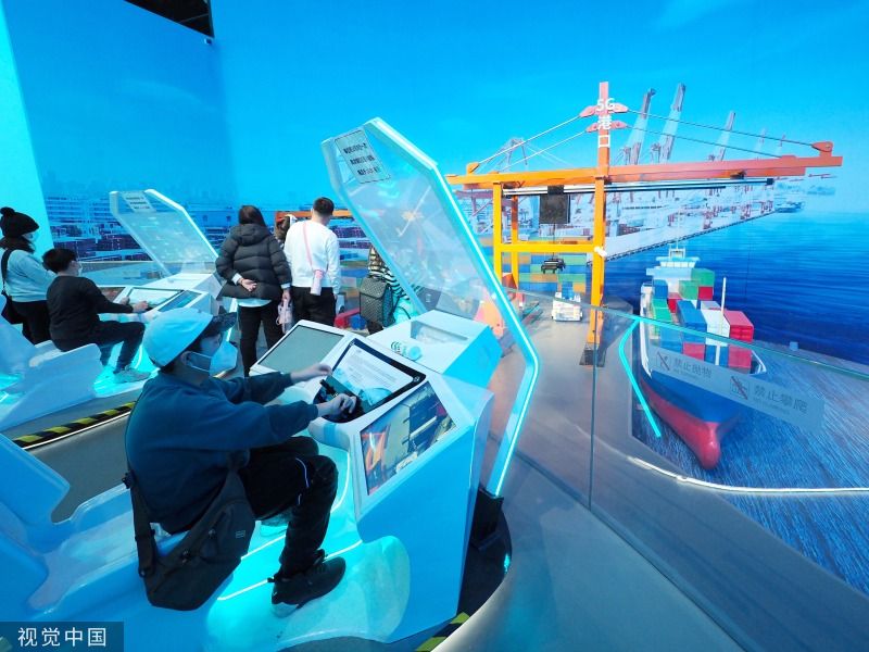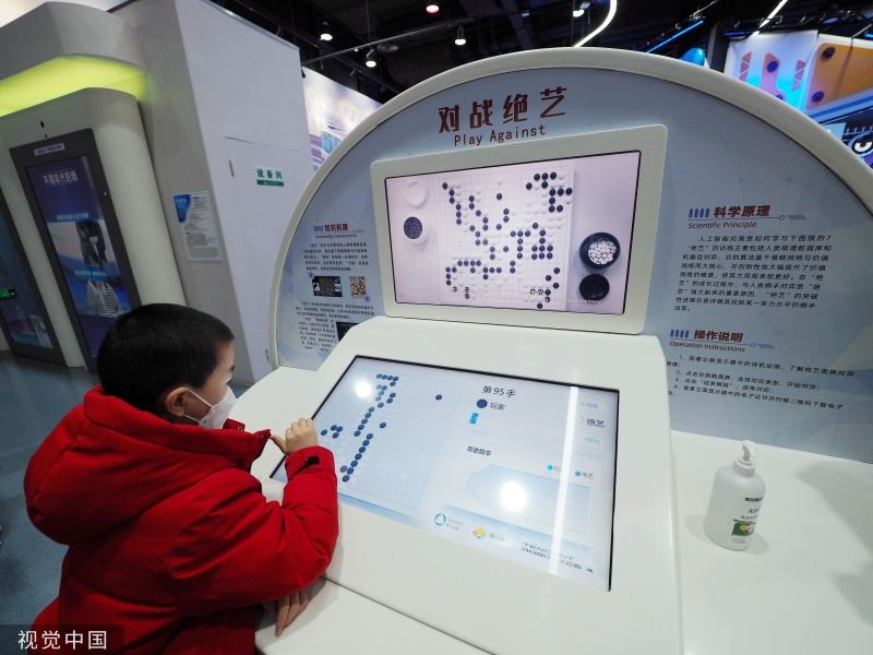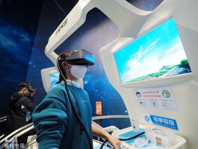 2023年1月10日,北京,中国科学技术馆,小朋友通过VR科技学习地球环保知识。当日,中国科学技术馆恢复开馆,观众可通过该馆官网或中国数字科技馆公众号提前预约购票。