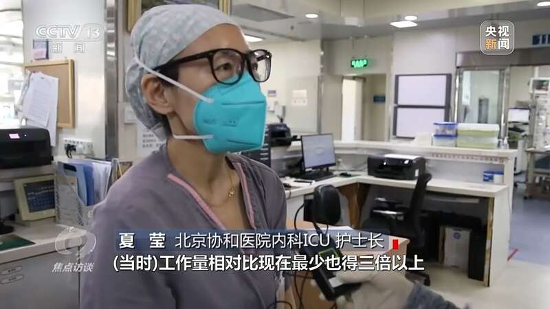 北京协和医院内科ICU护士长 夏莹:“当时工作量相对比现在要翻最少三倍以上,而且那时候病人也都很重,从医疗上,从护理上,我们要做好自我防护,同时也要保证病人安全,所以每班次下来真的很辛苦。”