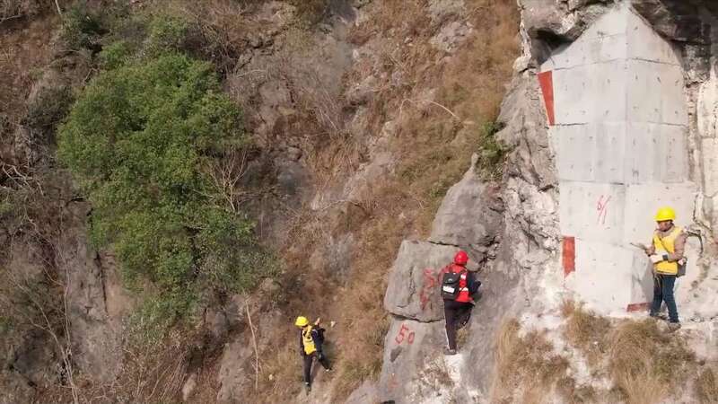 位于重庆市武隆区境内的渝怀铁路白沙沱1号隧道,地处乌江之畔,其一侧出口仰坡垂直高差300余米。在这个铁道旁平均坡度近60度的陡峭仰坡上,时常会有一群身着工服、手持各种排险器械的铁路工人攀爬其上。