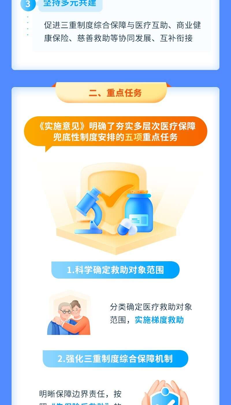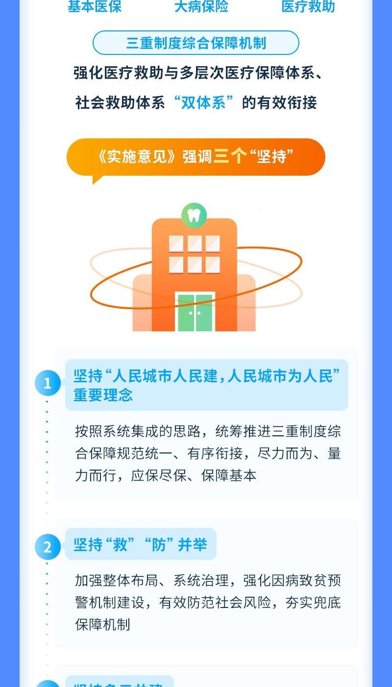 为进一步推动本市医疗保障工作高质量发展,切实减轻困难群众和大病患者医疗费用负担,日前,上海市政府办公厅印发了《关于本市健全重特大疾病医疗保险和救助制度的实施意见》。《实施意见》重点优化基本医保、大病保险、医疗救助三重制度综合保障机制,强化医疗救助与多层次医疗保障体系、社会救助体系“双体系”的有效衔接。《实施意见》强调三个“坚持”:一是坚持“人民城市人民建,人民城市为人民”重要理念;二是坚持“救”“防”并举;三是坚持多元共建。《实施意见》还明确了夯实多层次医疗保障兜底性制度安排的五项重点任务以及六类医疗救助对象。