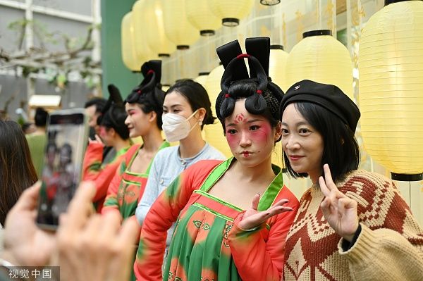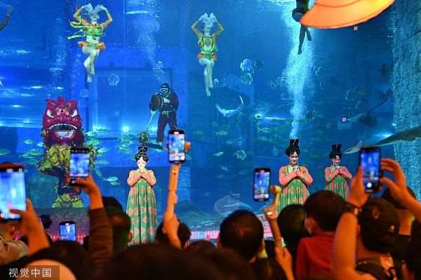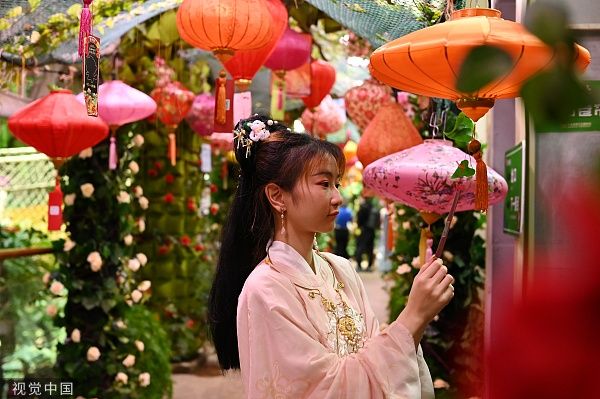 1月14日,广东广州正佳广场举办“正佳大唐千灯会”活动,市民游客可以在此逛新春灯会,赏唐风表演,体验年味十足的民俗游戏。图为游客在正佳雨林馆游玩拍照。 中新社记者 陈楚红 摄
