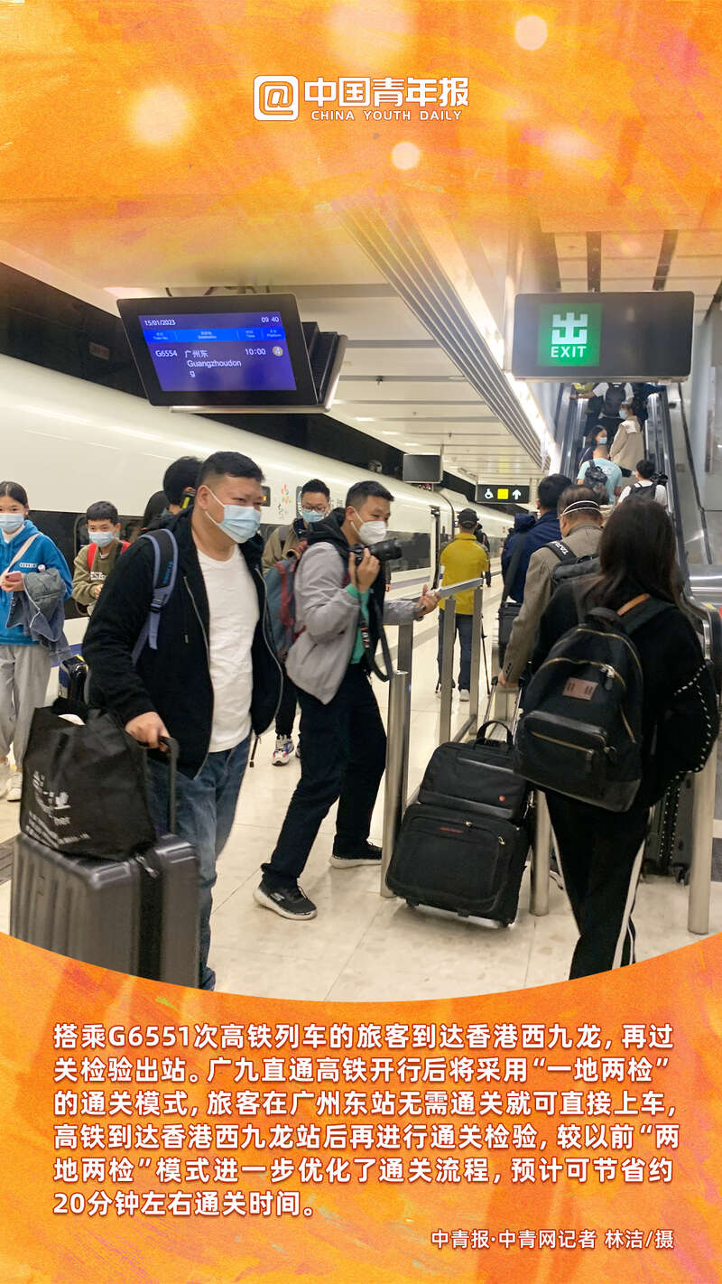 今天7时58分,G6551次高铁列车缓缓驶出广州东站,前往香港西九龙站。这是因疫情停运后广州东站首次开往香港西九龙站方向的高铁列车,标志着停运了近3年的广深港高铁香港段恢复运营,粤港两地铁路客运业务重启。