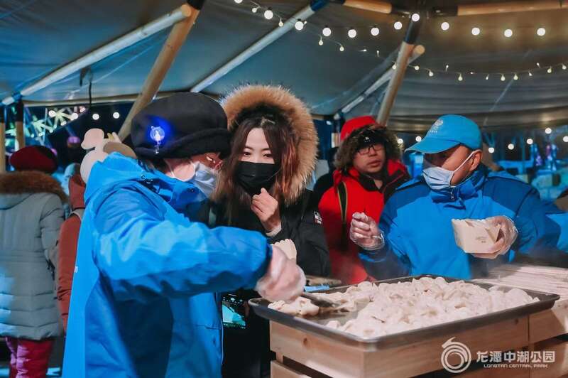 公园不仅为到场游客提供了“雪场免费进,雪圈随便玩”的玩法,还在冰天雪地的营地大帐里,为大家准备了热气腾腾的饺子宴,让大家不仅能玩得好,也能吃得暖。活动现场,有游客感慨:“饺子吃过无数次,这还是第一次和一百多号人一起吃呢!”