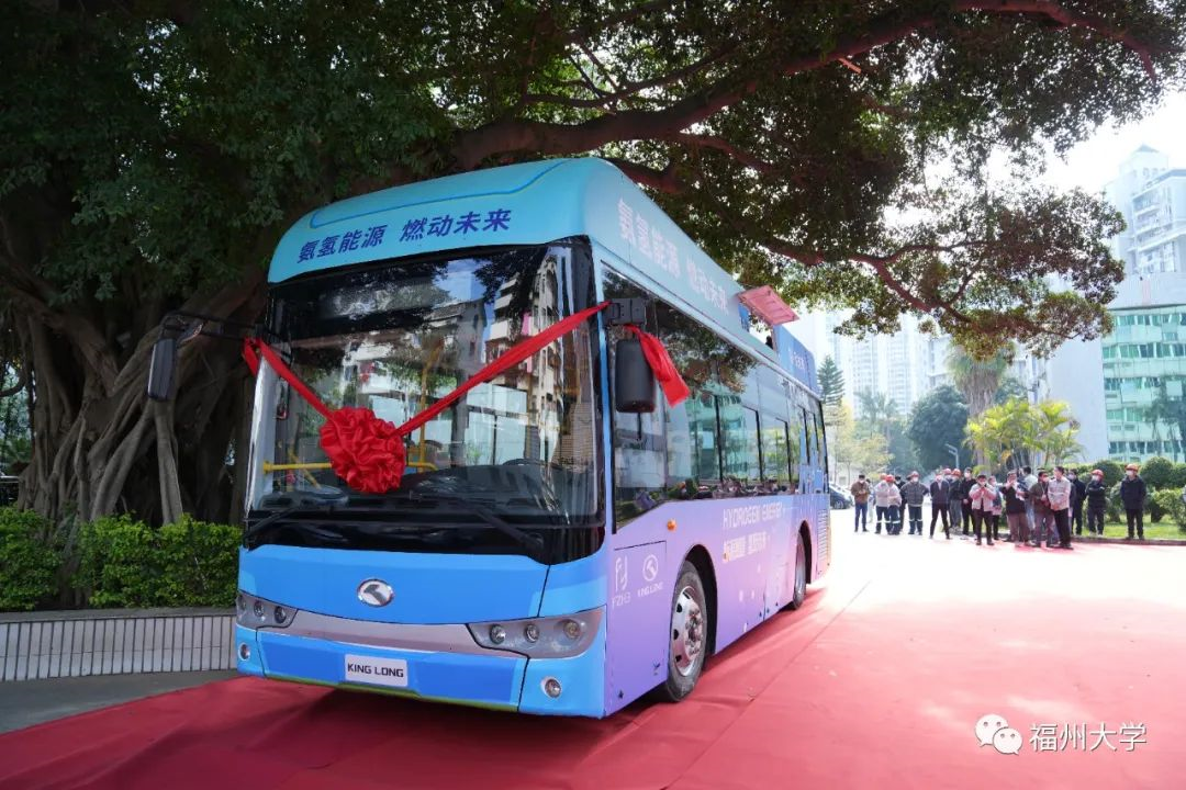 1月6日,由福大紫金氢能科技股份有限公司和厦门金龙联合汽车工业有限公司共同打造的 全国首辆氨氢燃料电池客车 启动暨签约仪式 在福州大学举行。福建省科技厅党组成员、副厅长叶碧海,福建省汽车工业集团有限公司党组成员、副总经理陈锋,紫金矿业集团副总裁龙翼,福建省科技厅高新处处长王志锋,厦门金龙联合汽车工业有限公司党委书记、总经理刘志军,福州大学领导陈国龙、林键出席活动。仪式由林键副校长主持。