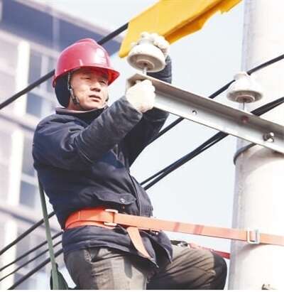 国网河南省电力公司柘城县供电公司工作人员在进行线路改造。