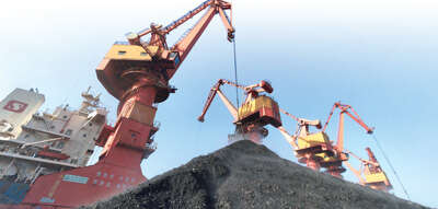 辽港集团营口港煤炭码头,吊机正在进行卸煤作业。 曹晋摄(人民视觉)