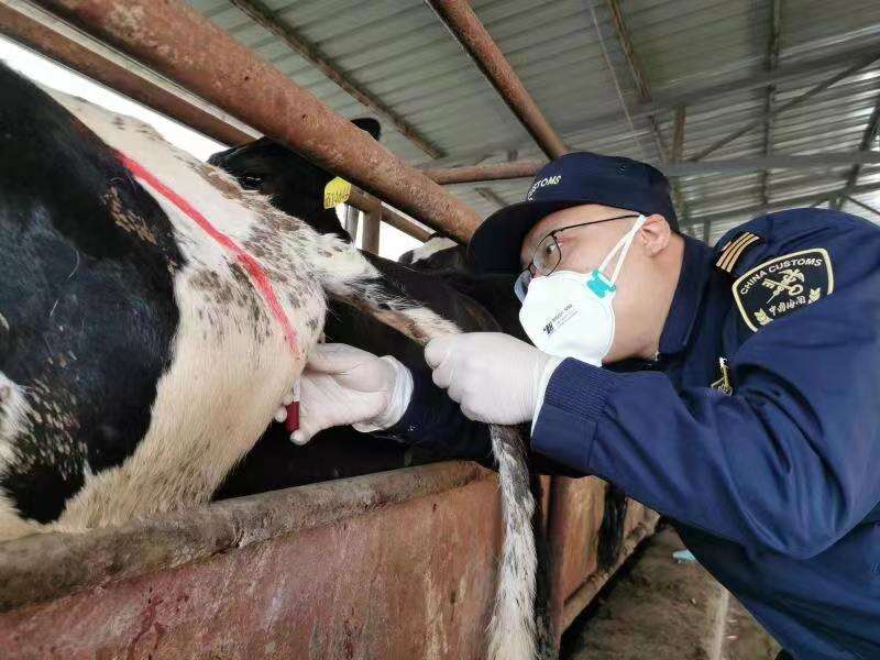 春节临近,最低气温降至零下10摄氏度左右。在天津宁河一处进境动物隔离检疫场里,天津海关所属宁河海关查检科青年关员韩勃正在对一批进境种牛采血。这群牛即将在天津过春节,韩勃也将在牛栏边陪伴这些动物“小伙伴”共度佳节。