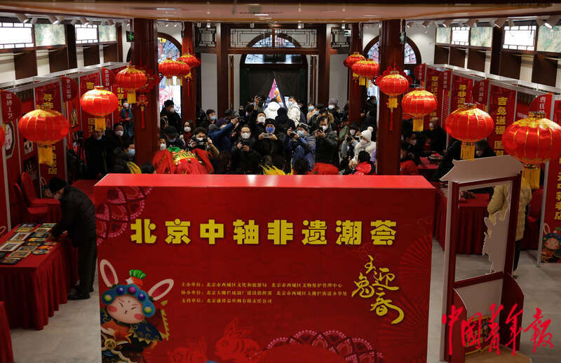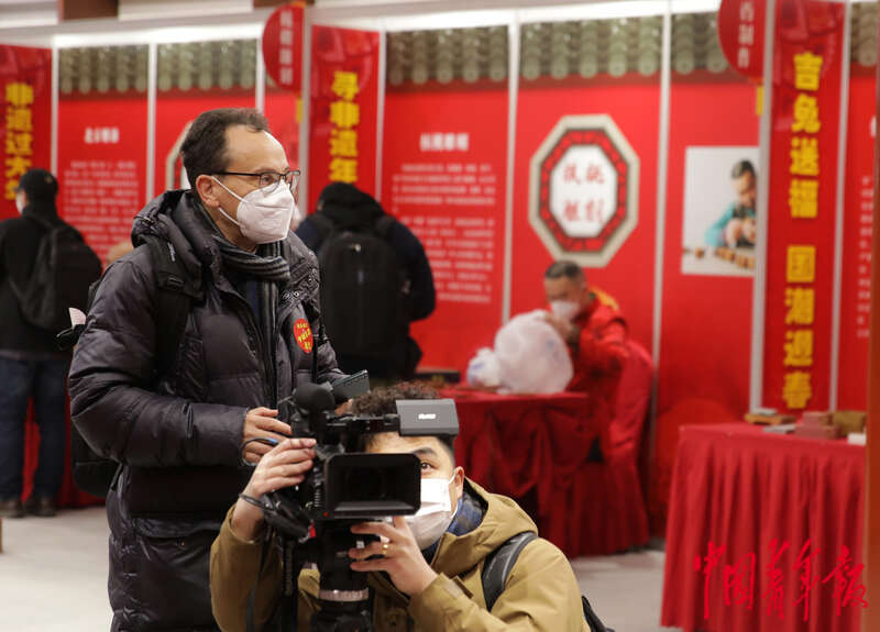 1月19日,2023年“北京中轴非遗潮荟”迎新春活动在位于北京前门大栅栏的谦祥益老字号举行。北京谦祥益地处中轴线大栅栏地区重要节点位置,是国家级重点文物保护单位,近日刚完成整体修缮重新亮相。据介绍,该地所处的北京市西城区持续探索文物活化利用和非遗保护的新举措,真正让“文物活起来”,助力北京中轴线文化遗产保护,进一步扩大优秀中华传统文化的影响力。中青报·中青网记者 陈剑/摄