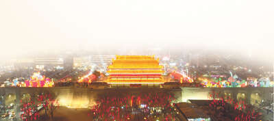 1月14日,西安多地亮起花灯,春节氛围渐浓。当晚,第三十六届西安城墙新春灯会亮灯仪式在西安城墙永宁门启幕,一盏盏精致的花灯流光溢彩,将古朴的城墙装点得年味十足。