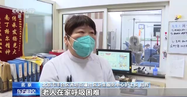 北京市丰台区青塔街道社区卫生服务中心护士长 周辉:老人在家呼吸困难,需要做一些氧疗,我们中心备了30个氧气袋,如果有需要的居民,就免费借给他们用。