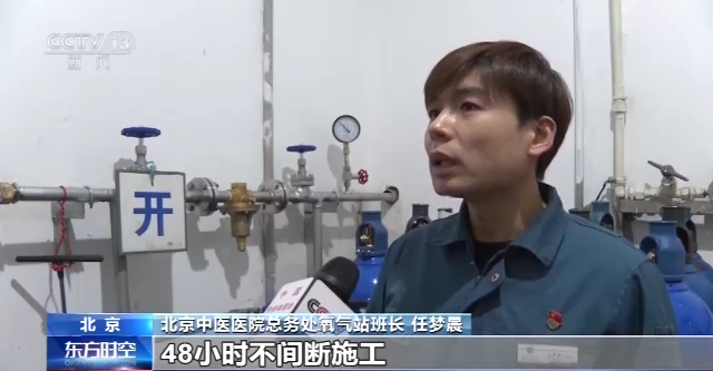 北京中医医院总务处氧气站班长任梦晨:以前我们有一条老旧管道,通过市政府的专班,给我们协调了专业的施工队,48小时不间断施工,完成了新管道顺利开通,这样就可以双路管道,为病房多台呼吸机同时供氧。