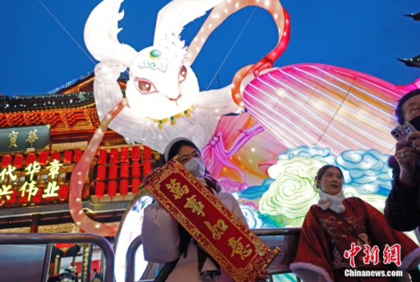 上海豫园灯会以“山海奇豫记”为主题,以中国传统神话《山海经》为蓝本,融非遗艺术灯彩、沉浸式国风体验、线上线下趣味互动于一体,打造一场文化大美的新春灯会。 中新社记者 殷立勤 摄