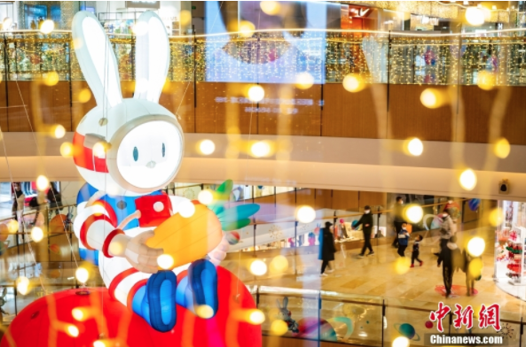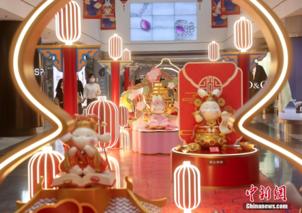 中国农历兔年临近,“福兔吉春”主题装置展扮靓北京商场,营造浓郁节日氛围。 中新社记者 易海菲 摄