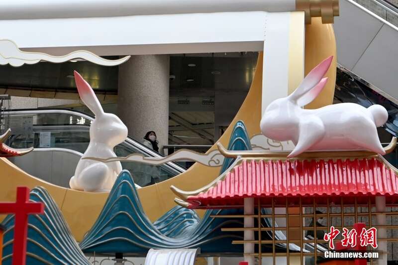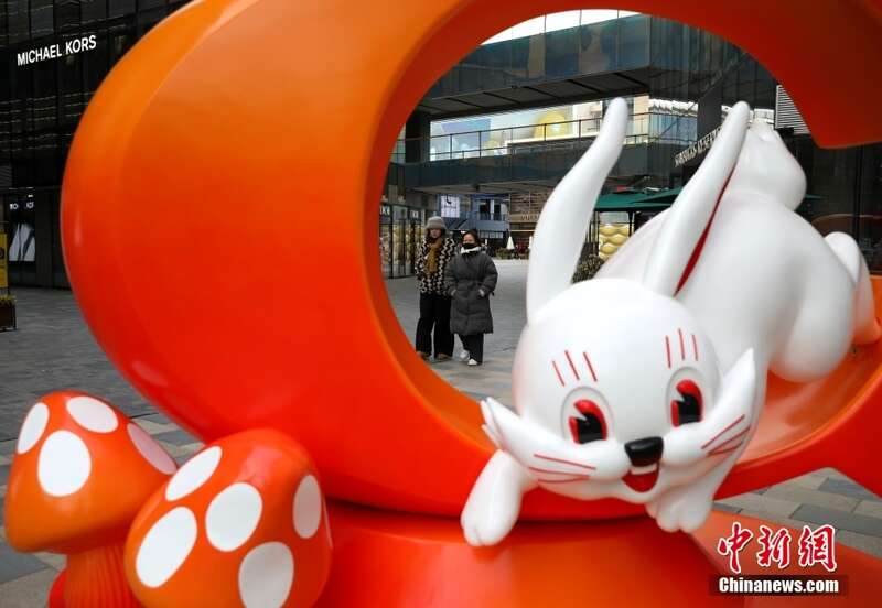 云南省昆明市一商圈布置白兔造型迎接癸卯兔年的到来。 中新社记者 李嘉娴 摄