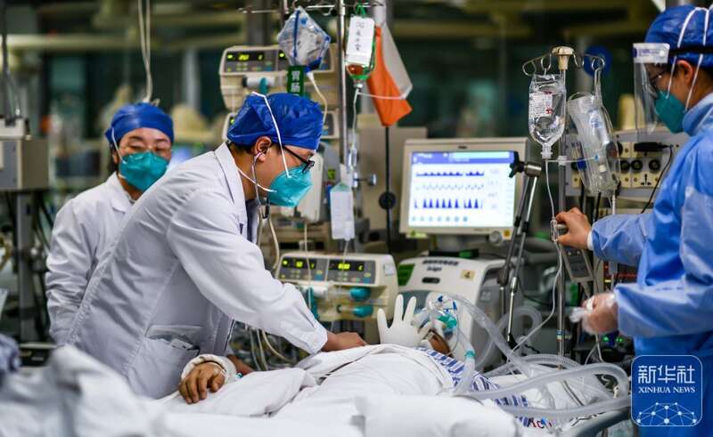 1月21日,云南省第一人民医院重症监护科医生倪矿在病房为病人检查。新华社记者 江文耀 摄