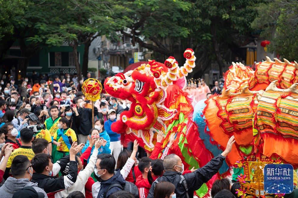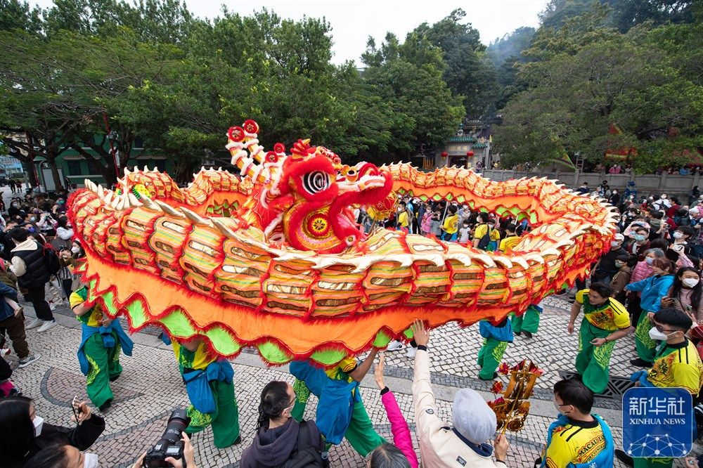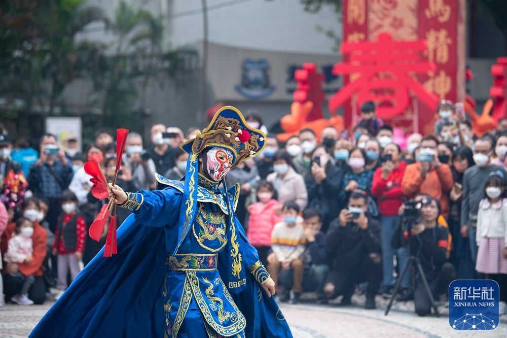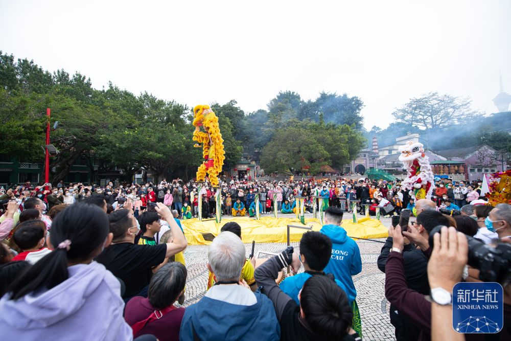 当日是大年初二,澳门旅游局在妈阁庙前安排了舞龙舞狮、变脸等贺岁活动,吸引大批市民及游客驻足观赏。