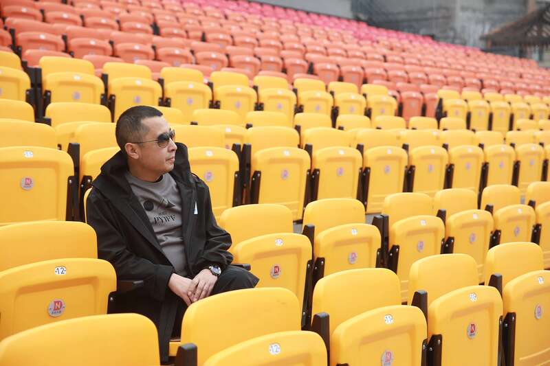 2017年10月底,首届平遥国际电影展期间,贾樟柯一人独坐在露天剧场。
