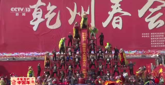 其中,惊险的狮子登高更是让大家叹为观止,37张八仙桌叠在一起,最上面的一张四脚朝上,一只只色彩斑斓、威风凛凛的“雄狮”,从最下面的桌子往上爬,一直爬到最高点,赢得观众阵阵掌声。
