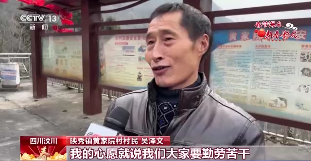 四川汶川映秀镇黄家院村村民 吴泽文:我的心愿就是我们大家要勤劳苦干,日子才会一天比一天好,不要懒惰,就是要埋头苦干。