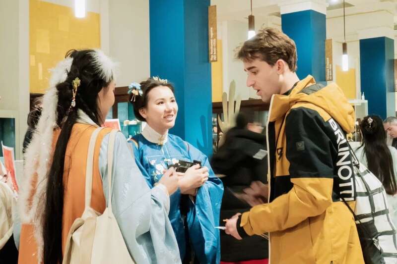 在博物馆熙攘的人群中,这些留学生向人们耐心介绍中国春节历史和传统,按照年俗给人们送上糖果,分享新春的甜蜜和祝福,以润物细无声的方式介绍中国文化,“一些孩子看到我们穿着汉服,很好奇,想要合影,我们就给他们讲述中国春节的故事”。