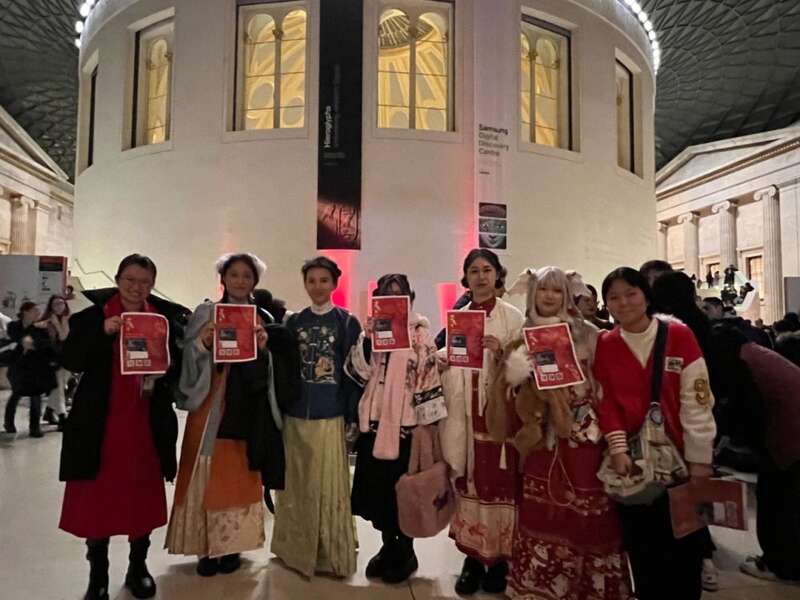 平素喜爱汉服的她随即把穿汉服去博物馆传播中国春节文化的想法发到了社交媒体上,得到不少人支持。20日当天,这些中国留学生带着糖果和介绍中国春节文化的海报,聚在了大英博物馆。其中,有人专门从诺丁汉乘坐两个小时火车赶到伦敦。