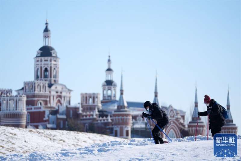 1月26日,游客在哈尔滨伏尔加庄园滑雪。新华社记者 王建威 摄