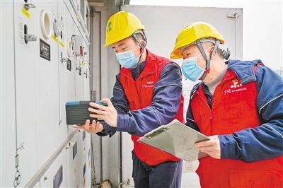 黄沛(左)在检查配电环网柜。 秦廷富摄(人民视觉)