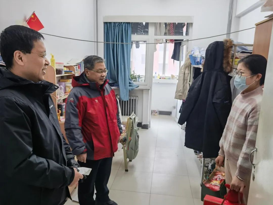 “今天代表学校来看望同学们,希望同学们在学校度过一个欢乐充实、喜气洋洋的春节,祝大家兔年吉祥、学业进步”,在学生宿舍,校领导与留校过年学生进行了亲切交谈。详细了解了同学们留校期间学习、生活等情况,叮嘱大家合理安排寒假生活,保持好学习和生活的节奏,多给父母长辈打电话、报平安、送祝福,并给同学们送上“新春大礼包”。