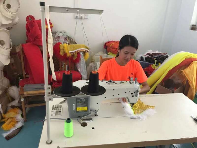 走进占地1000多平方米的扎作艺术馆,首先映入眼帘的是一个巨型的狮头扎作品,雄狮惟妙惟肖,神气十足。平日里,学生们就是在这里制作出一套套精美的狮头狮袍和文创产品。