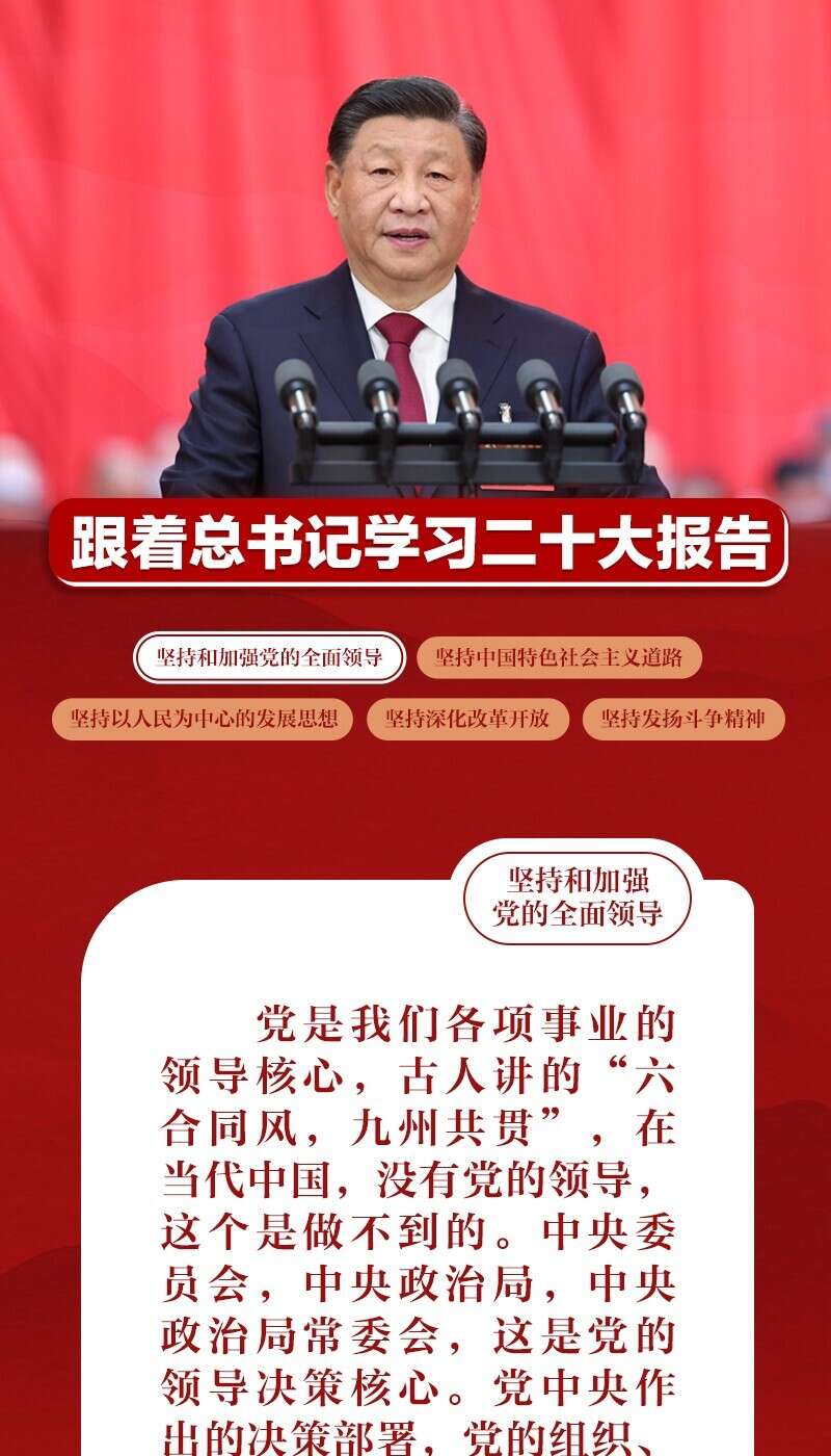 天天学习 习近平总书记在党的二十大报告中指出:“坚决维护党中央权威和集中统一领导,把党的领导落实到党和国家事业各领域各方面各环节,使党始终成为风雨来袭时全体人民最可靠的主心骨,确保我国社会主义现代化建设正确方向,确保拥有团结奋斗的强大政治凝聚力、发展自信心,集聚起万众一心、共克时艰的磅礴力量。”