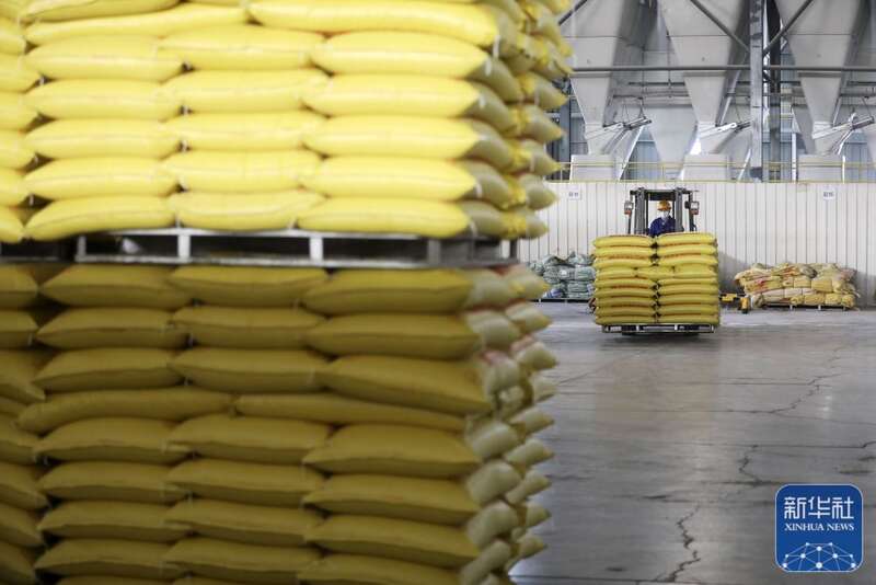 1月29日,在位于湖南资兴经济开发区的郴州双胞胎饲料有限公司,工人在生产车间驾驶叉车运输饲料。新华社发(李科 摄)