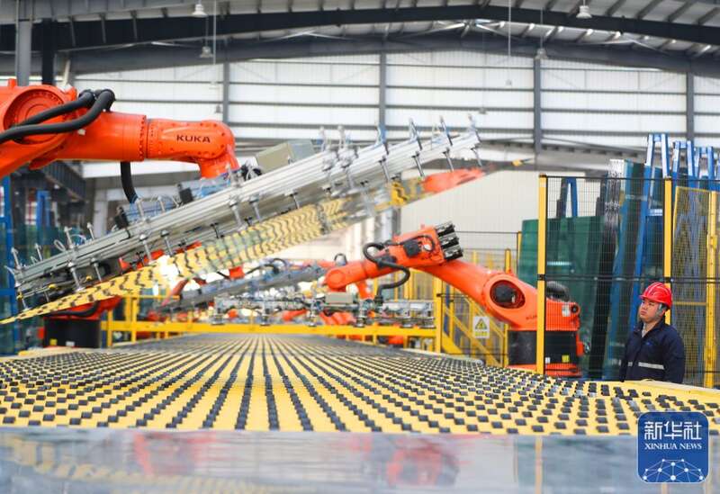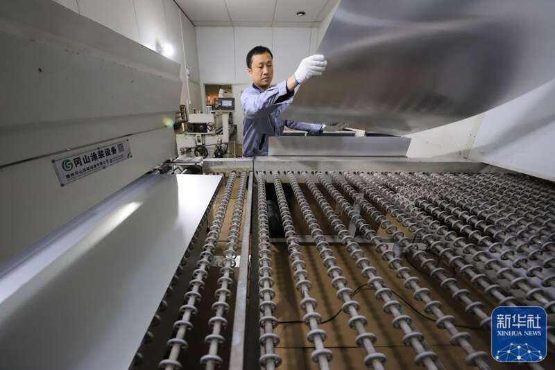 1月28日,湖南省衡阳市衡东县经济开发区,雁翔湘玻璃制品厂的员工在生产线上作业。新华社发(曹正平 摄)