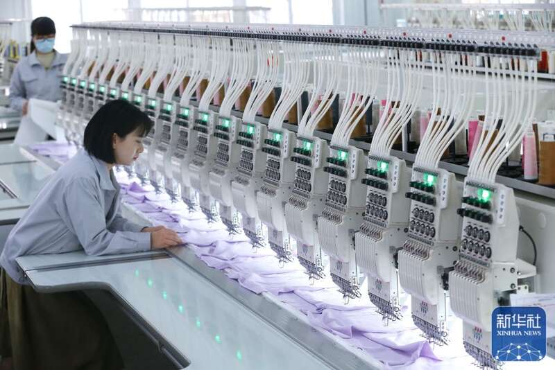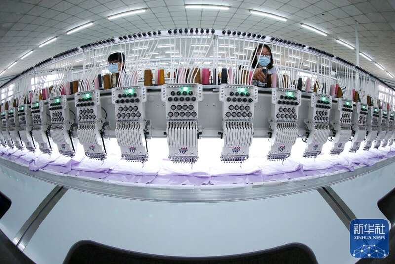 1月29日,在山东省青岛市即墨区龙山街道的一家纺织企业,工人在生产绣花产品。新华社发(梁孝鹏 摄)