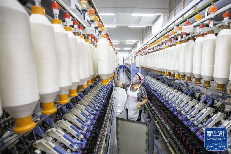 1月29日,山东省东营市广饶县千硕纺织有限公司的工人在智能化车间作业。新华社发(刘云杰 摄)