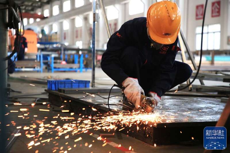 1月28日,在湖南省衡阳市,特变电工衡阳变压器有限公司工人进行打磨作业。新华社发(曹正平 摄)