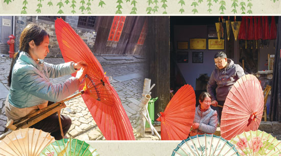 这已是老人在此购下的第三把大红伞。“再过3天,31岁的孙子就要结婚了!”她笑得合不拢嘴。用不着徐晓苗对大红伞过多的介绍,也不存在讨价还价,对于260元的价格未置一词,蒋龙英快速地拿起伞,付钱,转身,身影在巷道里慢慢淡去。基于百年来对大红伞的文化认同,购伞人与制伞人高度默契地完成了一次商业与文化的交流。
