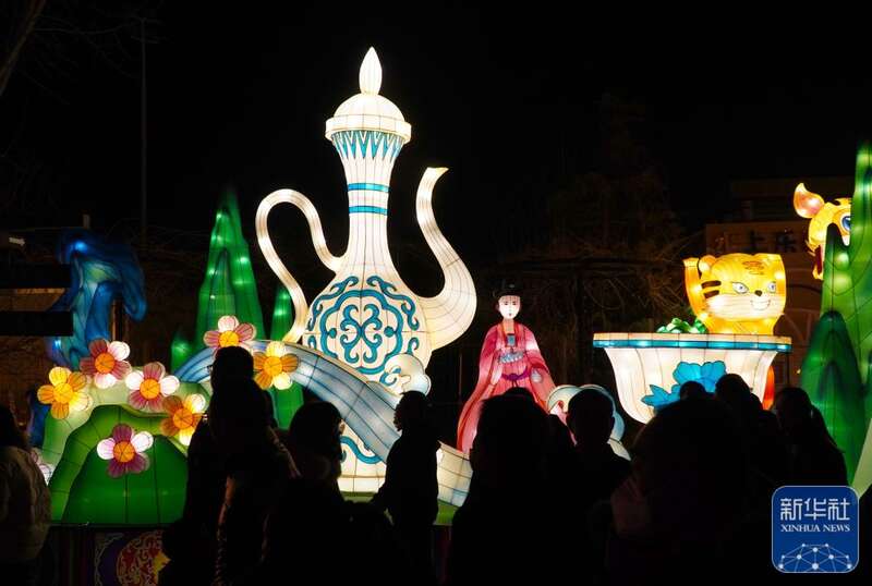 元宵佳节临近,在山东省淄博市张店区举办的玉黛湖花灯会上,50多组花灯灿烂多彩,吸引市民前来赏灯游览。山东省淄博市有着制作花灯、举办花灯会的悠久传统,淄博花灯会于2014年入选第四批国家级非物质文化遗产代表性项目名录。
