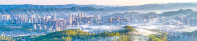 重庆市南川区,修复后的山峦植被茂盛,山与城和谐相融。
