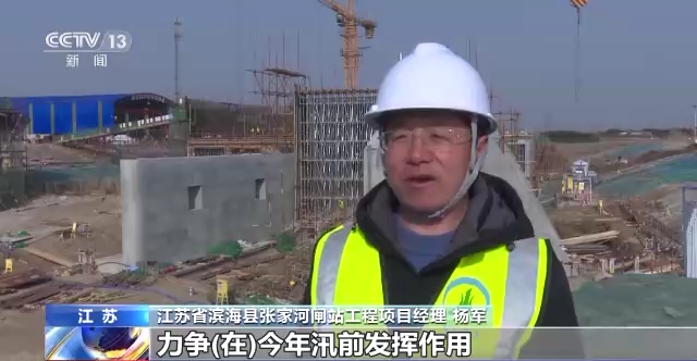 江苏省滨海县张家河闸站工程项目经理 杨军:预计今年四月底具备水下验收的条件。力争(在)今年汛前发挥作用。