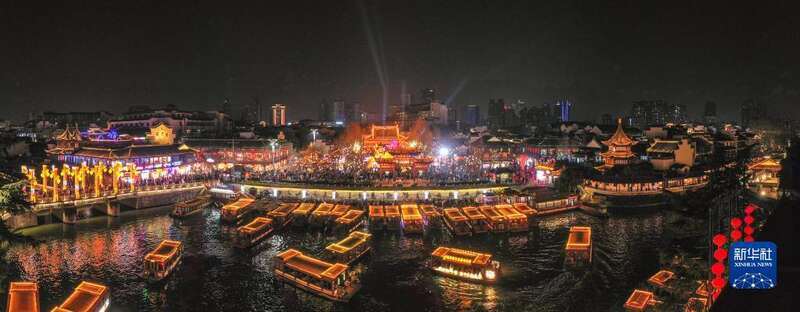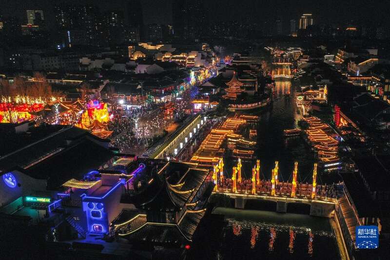 这是2月4日在南京夫子庙景区拍摄的秦淮灯会夜景(无人机照片)。