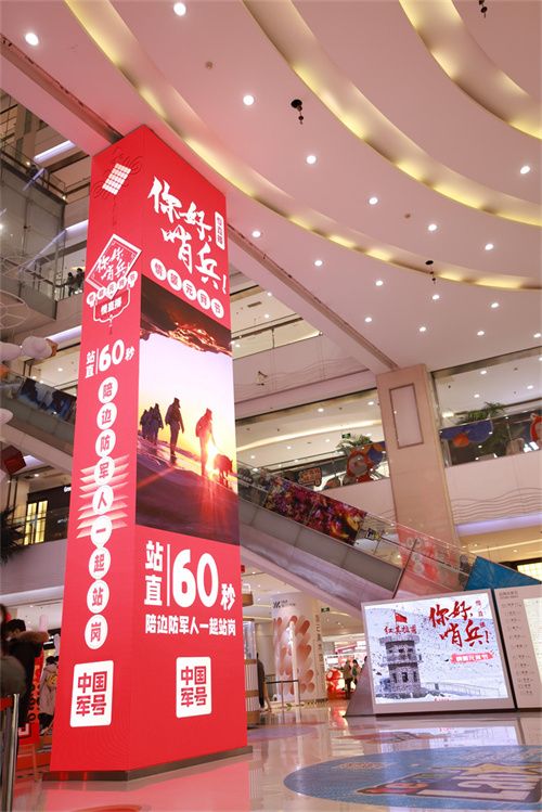 除了遥远的边防哨所,本次“你好哨兵·情暖元宵节”慢直播进行了形式和内容上的创新,可以说进入了“2.0时代”,首次邀请广大网友进行线下互动与体验:在北京某大型商场中庭,大屏实时播放着本次慢直播场景,市民可以排队走进“中国军号”团队设置的同屏镜头,通过“站直60秒”,以一种特殊的陪伴,与一线哨兵同站一班岗,向守护祖国、守护人民的边防官兵表达崇高的敬意。活动还邀请了哨所战士的亲人,以及全国各地的军迷、各行各业的代表“同站60秒”,用这种特别的形式陪伴官兵,体味沉默中的长情告白,让边防战士的坚守更温暖。