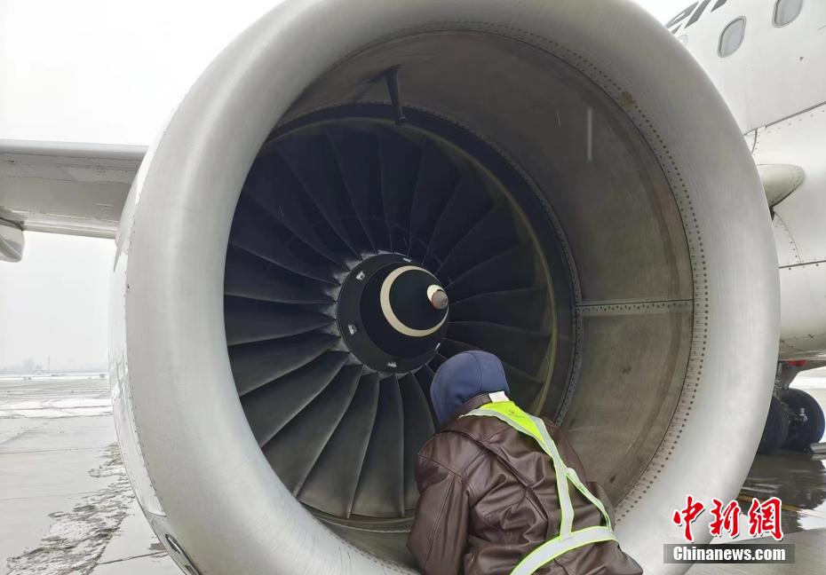 为确保春运期间运力充足,海航技术飞机维修人员正在专注地执行飞机检查和确认工作。赵海 摄