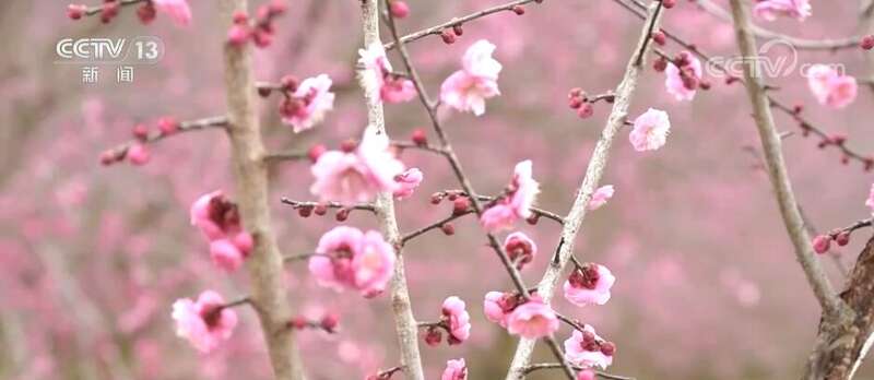 央视网消息:眼下,湖北恩施来凤县镇南村的300多亩梅花已进入盛花期。朵朵梅花吐蕊展瓣、美不胜收。微风拂过,缀满枝头的梅花摇曳生姿、暗香浮动。春意盎然的梅树下,不少游客前来拍照赏花。观花海美景、品土家风味已经成为当地初春乡村旅游的特色名片。
