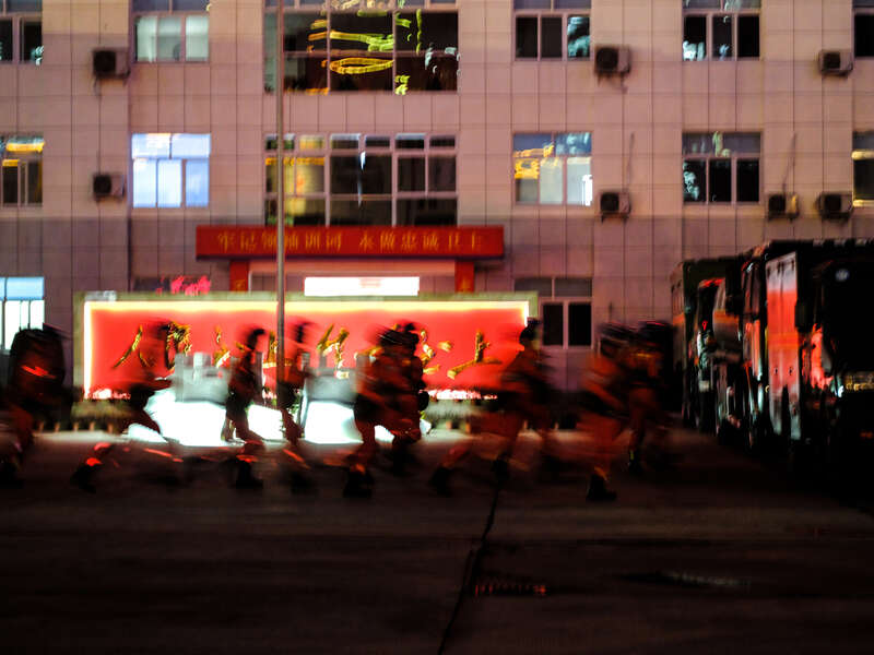2月8日,四川成都,四川省森林消防总队特勤大队正在进行夜间地震救援演练。 程雪力/摄