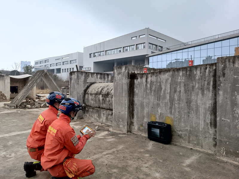 2月8日,四川成都,消防员正在使用雷达生命探测仪准确定位受困者。 程雪力/摄