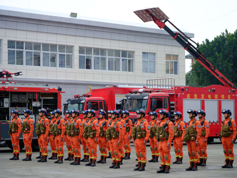 2月8日,四川成都,四川省森林消防总队特勤大队进行地震救援演练。程雪力/摄
