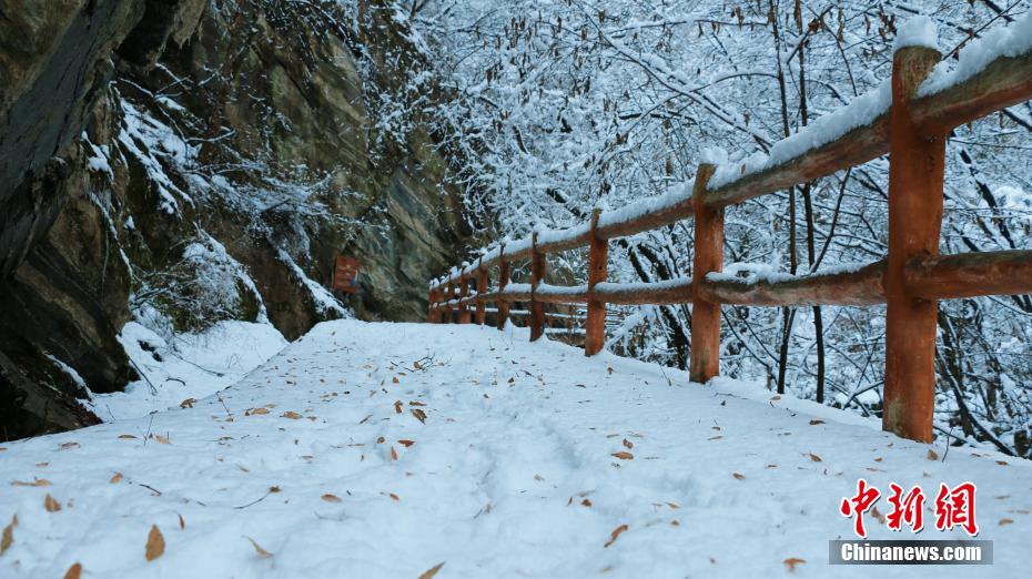 近日,立春后的陕西太平国家森林公园内落雪纷纷,秦岭山间冰瀑如玉柱,河道部分冰封,宛若“冰雪世界”。图为太平国家森林公园内雪景。太平国家森林公园 供图